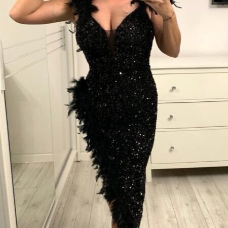 zł 276,00Sukienka którą przedstawiamy to połączenie cekin z piórami. Świetnie nada się na wesele czy inną ważną uroczystość. W tej sukience będziesz zachwycać każdego. Dopasuj do niej szpilki kopertówkę i stwórz elegancki look. ramiączka czarna bok dłuższy cekiny elegancka pióra kobieca S Długość całkowita najdłuższego boku:154 cm Długość całkowita najkrótszego boku:81 cm […]
