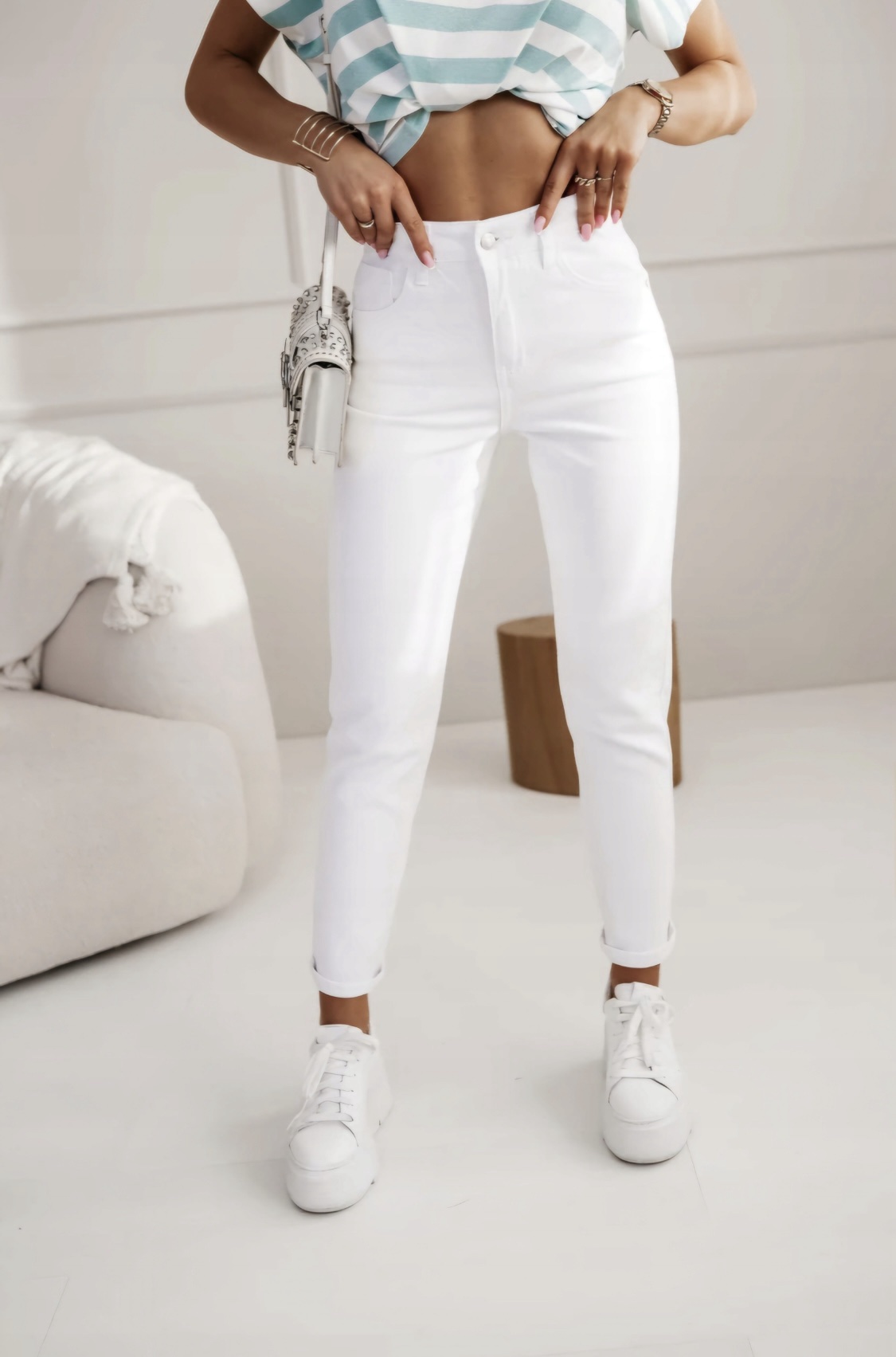 – **Design na czasie**: W tym sezonie białe jeansy to absolutny „must-have”.
