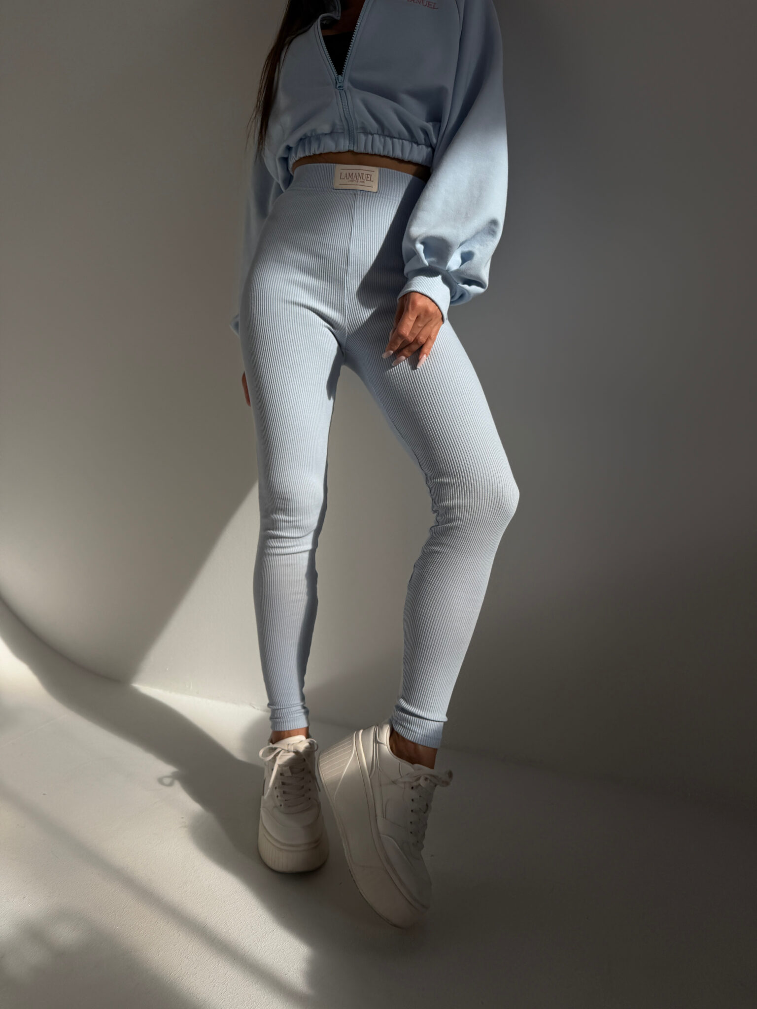 KOLOR LIMITOWANY!Aktualna partia dostępna jest w ograniczonej ilości, a zapisy na kolejną serię prowadzimy prywatnie (prosimy o kontakt z informacją o kolorze, rozmiarze i ilości) — produkcja zostanie uruchomiona dopiero po zebraniu minimalnej liczby zgłoszeń i do tego momentu zapis nie jest równoznaczny z realizacją zamówienia.Legginsy z wysokim stanem wykonane z elastycznej dzianiny prążkowanej, która pięknie dopasowuje się do ciała i podkreśla kształty. Pas dobrze trzyma talię, a struktura materiału nadaje im bardziej premium wygląd. Model wygodny, a jednocześnie bardzo kobiecy – dopracowany w każdym detalu.Skład: 90% bawełna 10% poliester