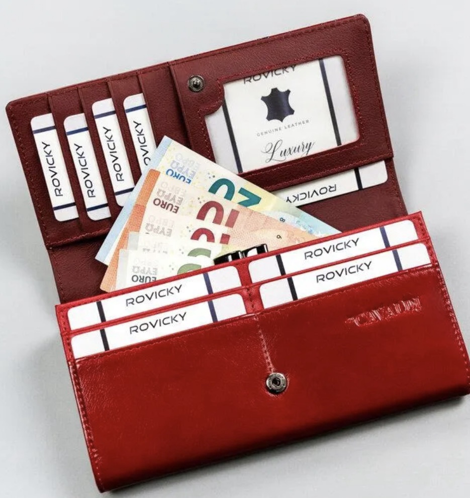 – **Przestronne przegródki** na karty, które pomieszczą pokaźne ilości kart kredytowych, lojalnościowych oraz dokumentów.