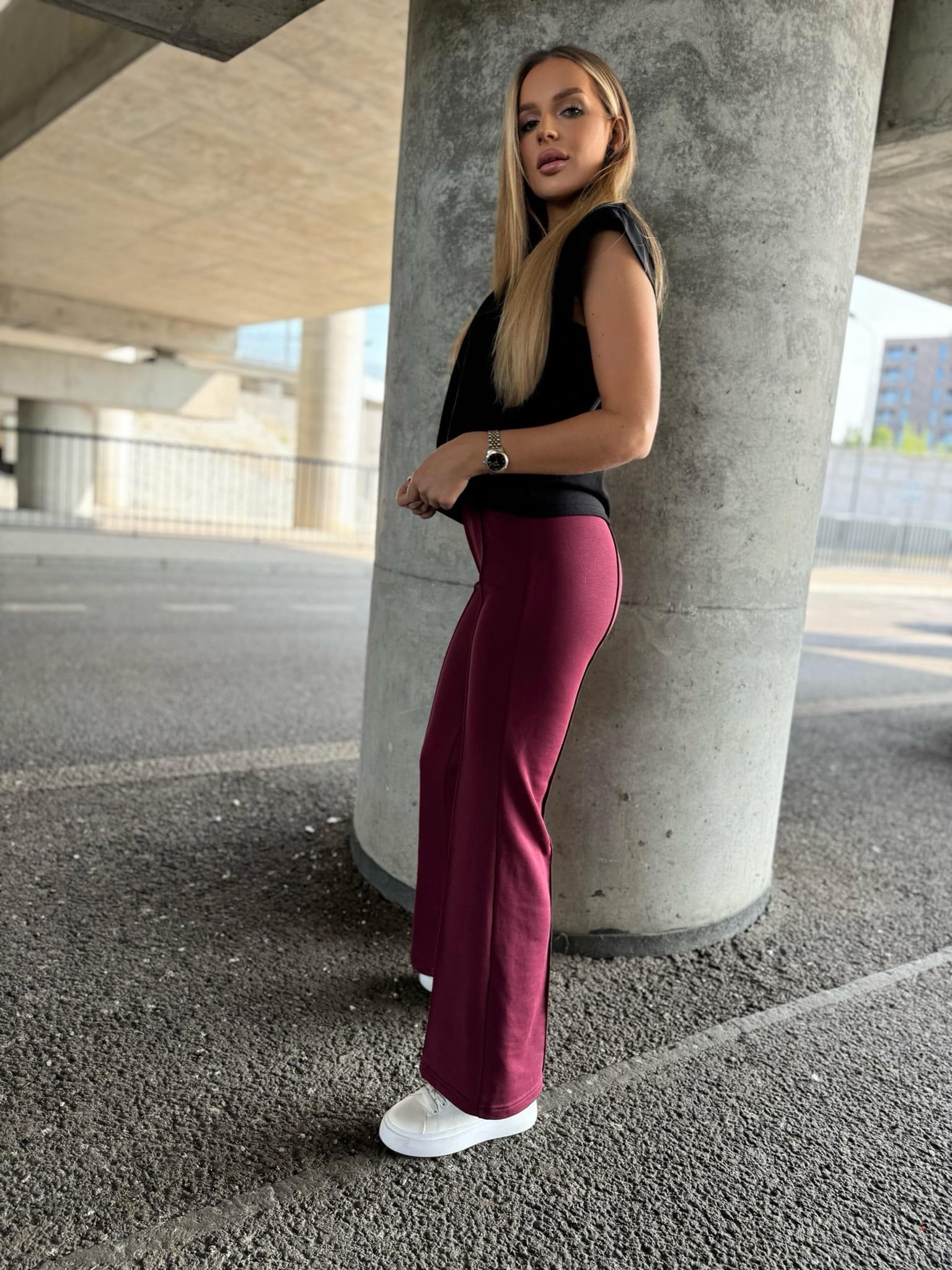 **Spodnie Dzwony – Bordowe, 100% Bawełna**
