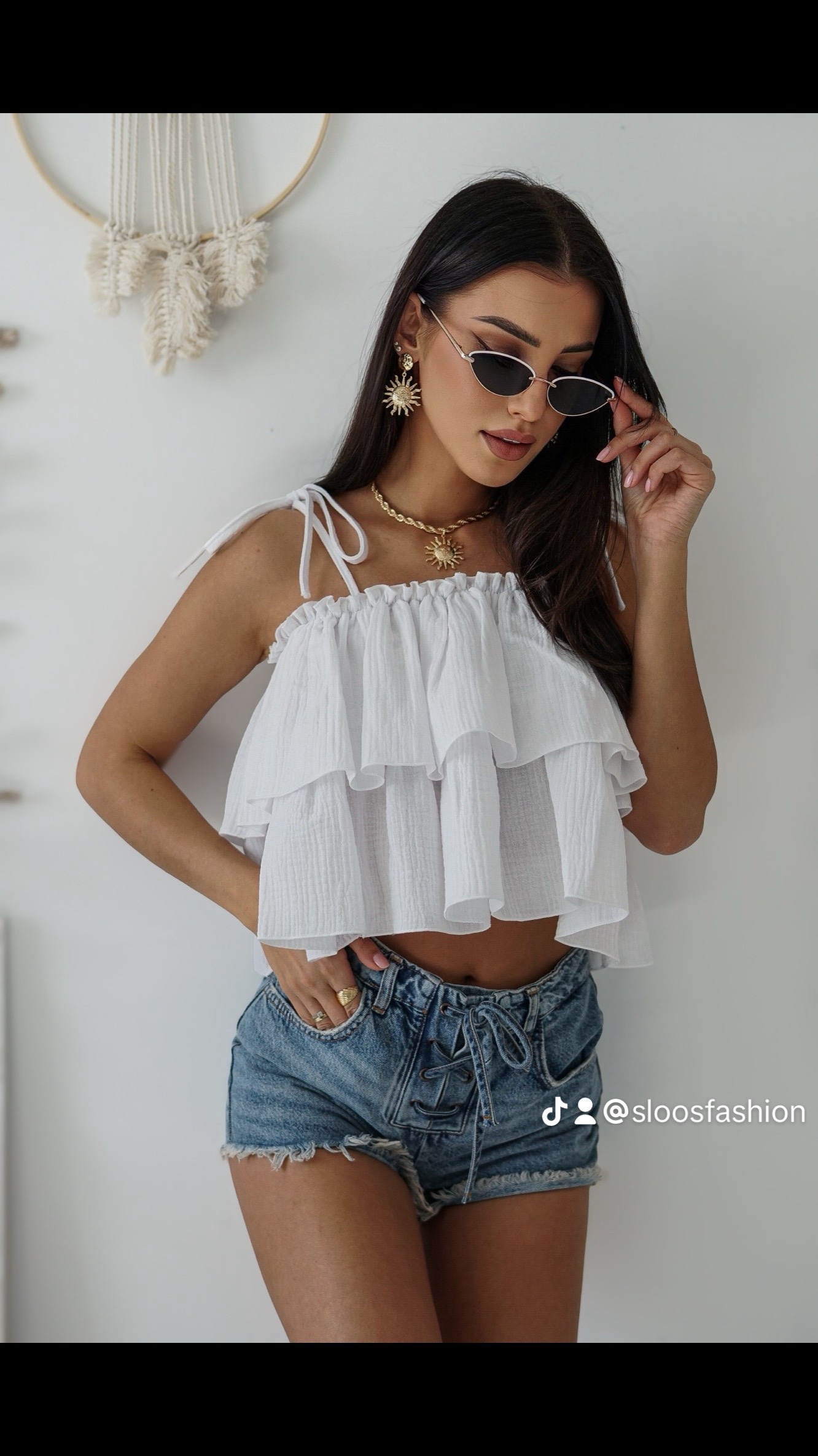 Odkryj nasz top crop MOLY, który idealnie odsłania ramiona, podkreślając delikatność linii szyi i dekoltu. Dzięki stylowemu wiązaniu, ten top zyskuje niepowtarzalny urok, pozwalając na regulację dopasowania i różne stylizacje.