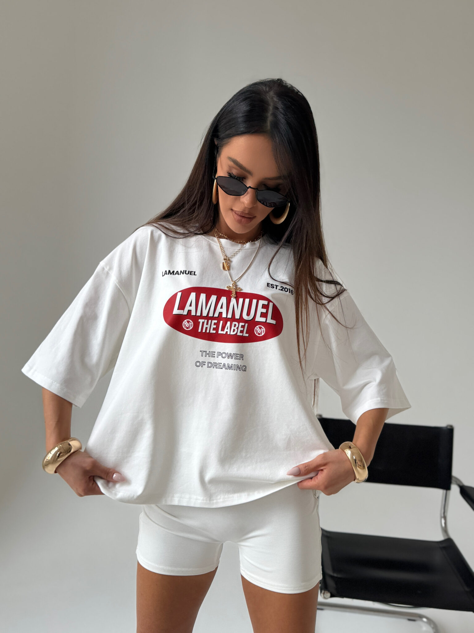 T-shirt oversize z unikalnym nadrukiem to połączenie swobodnego stylu i wygody. Wykonany z wysokiej jakości materiału, zapewnia komfort noszenia i przewiewność przez cały dzień. Luźny fason z obniżoną linią ramion gwarantuje pełną swobodę ruchów i nadaje stylizacji nowoczesny, streetwearowy charakter.Starannie zaprojektowany nadruk przyciąga uwagę i podkreśla indywidualny styl. To uniwersalny element garderoby, który doskonale sprawdzi się w codziennych i casualowych stylizacjach. Dzięki solidnemu wykonaniu i trwałym szwom T-shirt zachowuje swój wygląd nawet po wielokrotnym praniu.Idealny wybór dla osób, które cenią sobie wygodę i modny, luźny krój.Skład: 100% bawełna